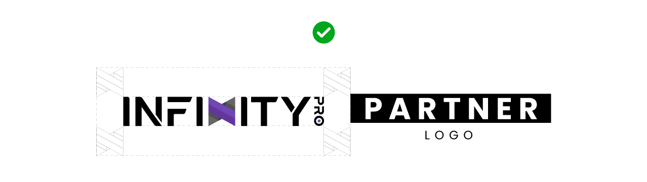 Wherever you use the logo, it must not be crowded in by other elements. To make sure you’ve left enough space around the logo, leave space is equal to the height of the “InfinityPro Symbol”.